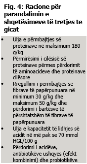 Për parandalimin e shqetësimeve të tretjes, masa të veçanta, si p.sh. vetëm rritja e përmbajtjes së fibrave të papërpunuara në ushqimin për rritjen e gicave ose ushqyerja me sasi të kontrolluara, nuk janë shumë efektive. Problemet me diare tek gicat në ferma lindin gjithmonë nga bashkëveprimi i disa faktorëve shkaktarë. Prandaj, është e nevojshme që për problemet e diares të merren masa të shumëfishta të kombinuara, si në aspektin e përgatitjes së racioneve ushqimore, ashtu edhe në teknikat e ushqyerjes (Fig. 4).