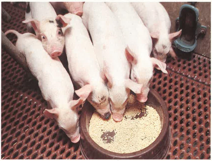 Përqindjet më të larta të proteinave, sasi të tepërta dhe të patretshme proteinash dhe produktet mikrobiologjike të shkatërrimit të proteinave (amina biogjene, amoniak), veçanërisht nga zorra e trashë, ngarkojnë rëndë metabolizmin e derrave të vegjël. Përmes përdorimit të burimeve cilësore të proteinave (si miell soje, proteina e qumështit) dhe veçanërisht përmes plotësimit me aminoacide të përshtatura sipas nevojës, përmbajtja e proteinave mund të ulet deri në më pak se 18% në ushqimin për rritjen e derrave pa ndikime negative në performancën e tyre. Efekti dietik i fibrave të papërpunuara realizohet vetëm nëse një pjesë e konsiderueshme e tyre përdoret nga mikrobet e zorrës së trashë dhe krijohen sasi të mjaftueshme të acideve yndyrore të avulluara, veçanërisht acid acetik. Kjo ul pH-në në zorrën e trashë, stimulojnë metabolizmin e qelizave epiteliale të zorrës, rregullojnë rigjithëmbajtjen e elektroliteve dhe ujit, dhe reduktojnë në mënyrë drastike formimin e produkteve toksike të shkatërrimit të proteinave. Kapaciteti i lartë i lidhjes së acidit në ushqimin për rritjen e derrave e thyen funksionin e barrierës kundër hyrjes së mikroorganizmave të padëshiruar në zorrë dhe ulin efektivitetin e enzimave të tretjes në stomak. Ushqimet me kapacitet të lartë lidhjeje të acidit, si përbërësit mineralë, duhet të kufizohen shumë. Miell soje, drithërat (gruri) dhe përbërësit mineralë cilësorë janë ushqime me kapacitet të ulët lidhjeje acidike. Përveç një projektimi të synuar të racioneve, teknikat e posaçme të ushqyerjes dhe higjiena e ushqyerjes janë metoda të provuara dhe të përshtatshme për të luftuar diaretë me sukses. Një nga masat më efektive në teknikat e ushqyerjes është dhënia e ushqimit shtesë gjatë periudhës që gicat ushqehen me gji, e cila shpesh ne praktikë lihet pas dore (Fig. 5).